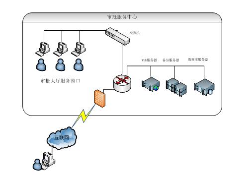 3、“審批服務(wù)中心”局域網(wǎng)與客戶通過外網(wǎng)進行互聯(lián)。